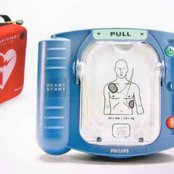 万最新型のAED等の救急機器や医薬品等を常備しています