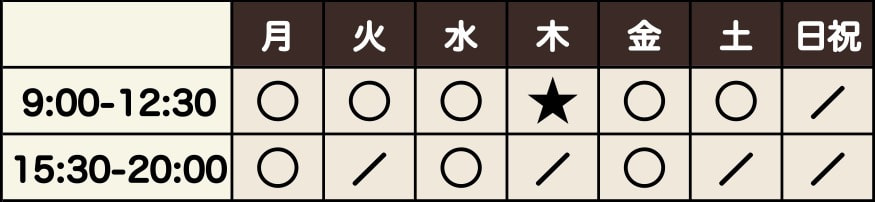 休診:木曜、日曜、祝日